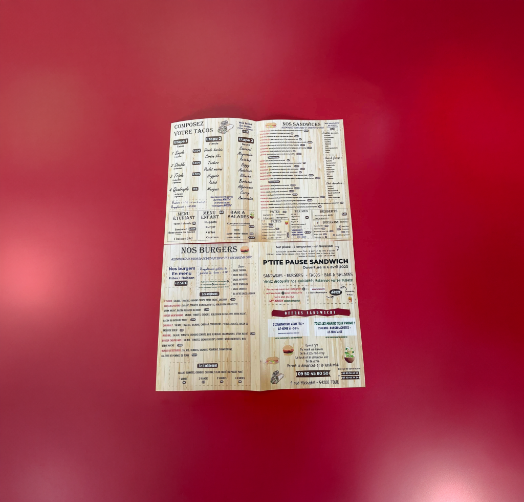 L’agence PANO Toul vous conseille pour concevoir, créer et imprimer votre menu de restaurant personnalisé.